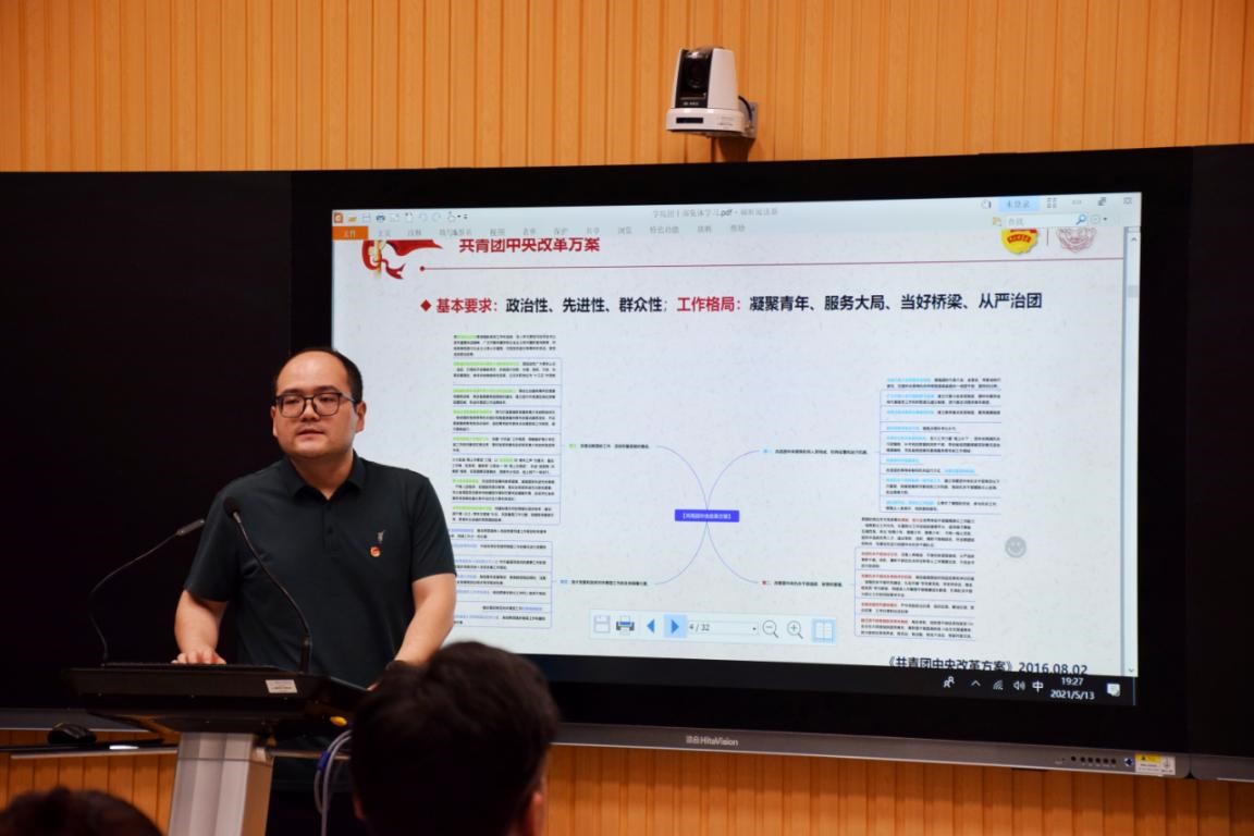 首先,陈海涛老师以《共青团中央改革方案》《深化公司共青团改革的若干措施》等文件要求开篇,介绍了共青团工作的基本要求和工作格局,要求高校团学干部在平时工作中履行职责使命,重点强调了共青团工作的政治性、先进性、群众性,并就这三方面详细的列举了在日常工作推进中的相关实例,让大家能够更加贴切的理解其真正含义,并融入到自己平时的工作当中,积极推动公司共青团组织切实发挥政治功能。