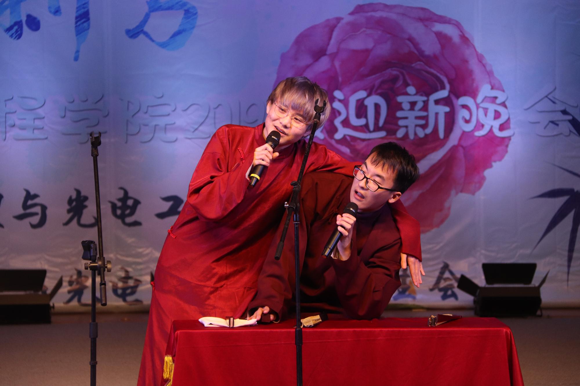 紧接着,郑浩楠同学一首《光年之外》将观众们带入晚会的欢乐气氛;员工会文艺部为同学们带来了原创光影剧《光影少年》,用肢体与光影的绝妙配合展现了新学期专属于新生的西电记忆:从独自踏上火车的紧张、告别时的泪水、初到校园的激动以及认识新朋友的欣喜等;口琴和手风琴合奏的《未闻花名》轻柔舒缓,令人沉醉;辅导员王晨辉、韩金虎现场抽取了幸运观众并为新生送上了祝福,希望同学们在美丽的XC体育能够不负韶华、学有所成;抽奖环节过后,晚会继续进行。介四相声社带来的相声《我要招新》令现场观众捧腹大笑,欢笑声不绝于耳;B-force街舞社带来的舞蹈《快乐黑怕》,用明快的节奏带我们领略了协调的美感与团队的力量;新生同学展现了自己的风采,带来的歌曲串烧娓娓动听。在此之后又到了紧张刺激的游戏环节,在场观众自发上台参与游戏《谁是卧底》,大家斗智斗勇、绞尽脑汁,参与互动的同学们均领取到了精致的小礼品。