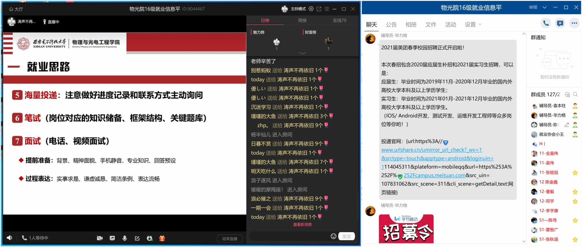(通讯员:陈海涛)“本期就业指导直播开始了!进入房间的同学请敲1。”受疫情影响,毕业生春季就业应聘工作受到冲击,XC体育转变就业服务思路,在整合原有就业资源和工作经验的基础上,着眼实际,分类引导,精准施策,提升质量,扎实推进2020届毕业生就业服务工作。