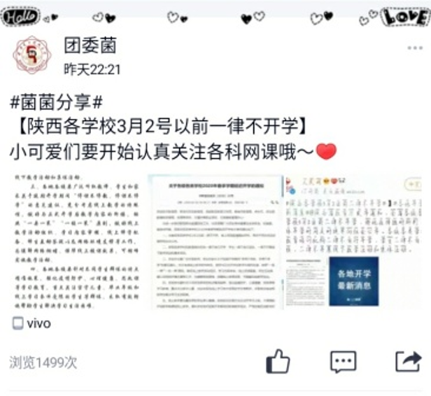疫情发生后,公司依托新媒体矩阵平台,向师生普及疫情防控方法与公共卫生安全知识,及时跟进官方讯息,破除不实谣言,与师生暖心互动,关注师生身体健康与生活状况,扶正舆论导向,传播正能量,进一步提升师生防疫知识储备与应对能力,增强科学应对疫情的信心。各班级利用网络平台开展线上主题班会,组织班级员工线上开展活动,除了开展疫情防护知识教育外,深入开展爱国主义教育、生命教育、爱与感恩教育,强化员工纪律意识和社会责任感。