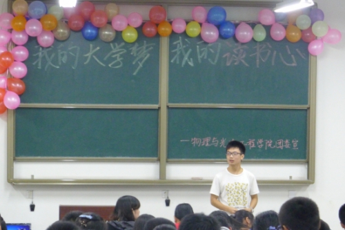 (通讯员 银凤)9月27号晚,以“我的大学梦,我的读书心”为主题的读书交流主题团日活动在A楼314教室举行,此次活动由XC体育团委读书社主办,XC体育团委各部部长与2012、2013级各班同学参加了此次活动。