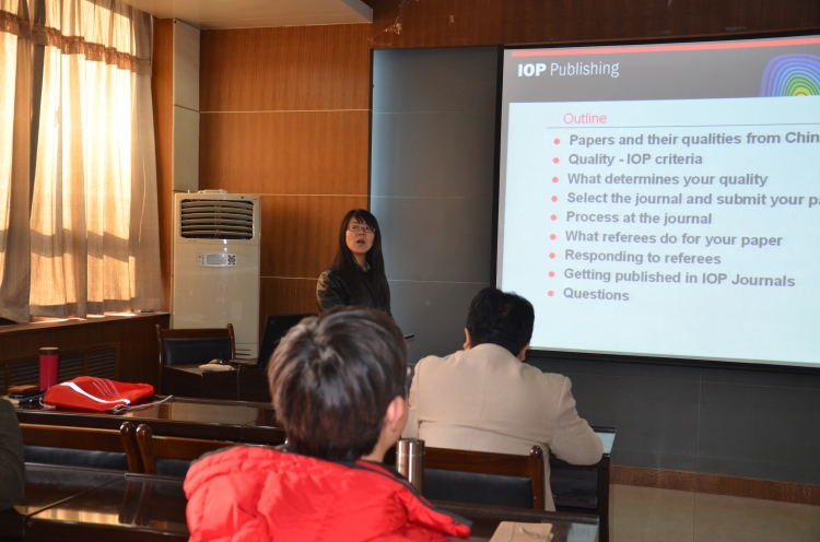 应XC体育经理郭立新教授的邀请,英国物理学会(IOP)驻北京办事处的编辑熊春博士来校作报告。