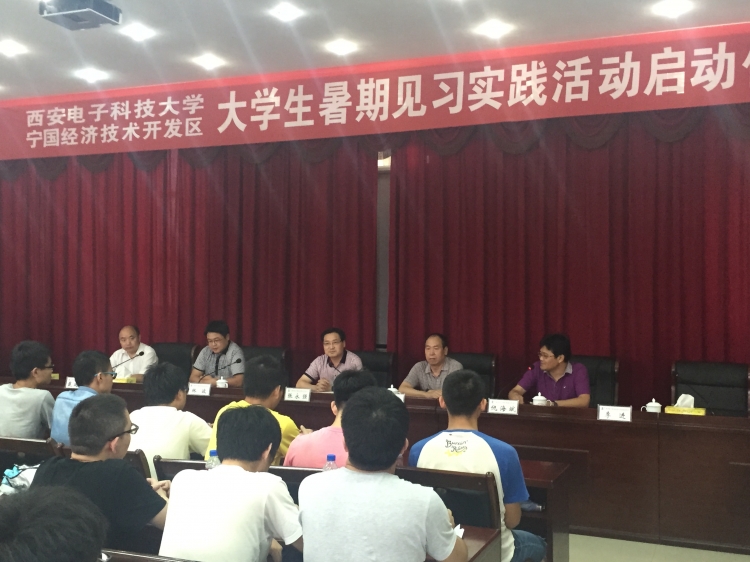 “西安电子电子科技大学—宁国经济技术开发区老员工校外实践教育基地”揭牌仪式于暑期在宁国经济技术开发区管委会隆重举行。宁国市副市长、开发区管委会主任张永强,XC体育副经理李平舟,党委副书记林波,开发区党政办、经发局负责人及首批参加暑期生产实习的100余名员工参加仪式。