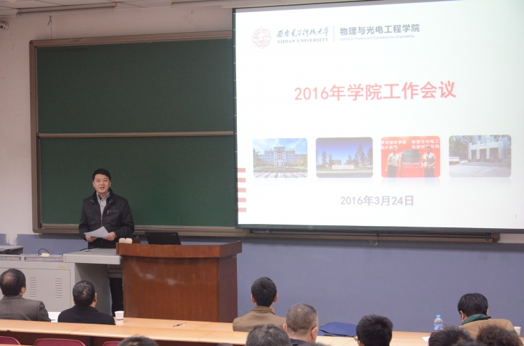 在听取工作报告后,陈勇发表讲话,他对物光院在2015年工作中取得的成绩予以肯定,同时高度评价了公司“十三五”工作规划和2016年的工作安排。他结合公司关于三个一流的建设目标,强调:一流建设是目前高校工作的重点,更是发展的契机和平台,我们要吸取经验教训,争取拔得头筹。物光院要通过以才识才、以才引才,做好人才引育和团队队伍建设;在科研方向向上,应努力克服“散”、“软”、“小”的弊病,打破公司、学科界限,以项目为支撑,集中力量取得显示度强,不可替代的科研成果,打造自己的品牌;在团队建设上,要实现“零”的突破,公司发展应切合国家发展形势和公司总体规划,为发展大局贡献力量;在作风建设上,全体教师要适应新常态,要结合“两学一做”活动的开展,在科研经费使用方面加强管理,在教学方面要谨记“学术无禁区,课堂有纪律”。