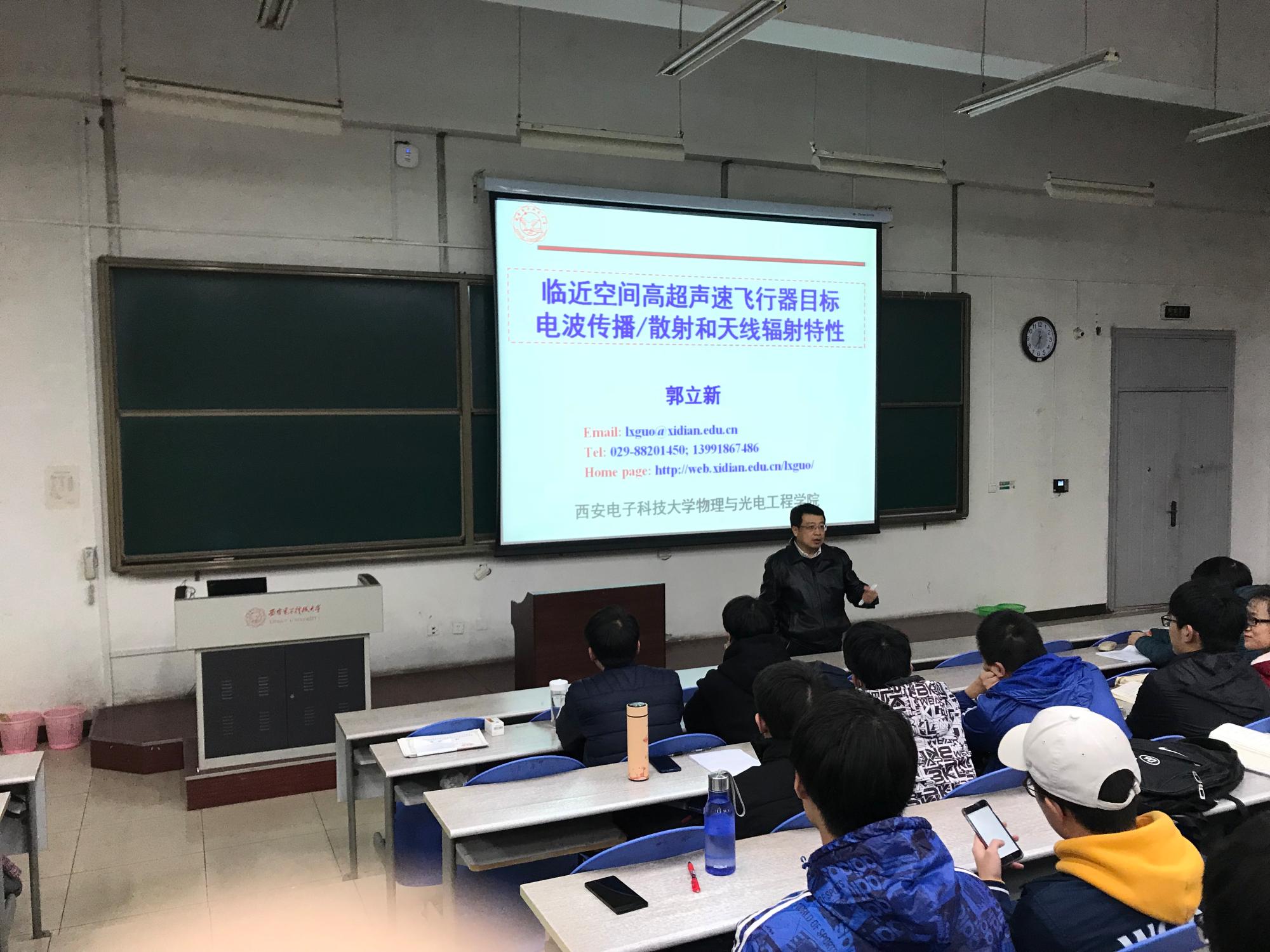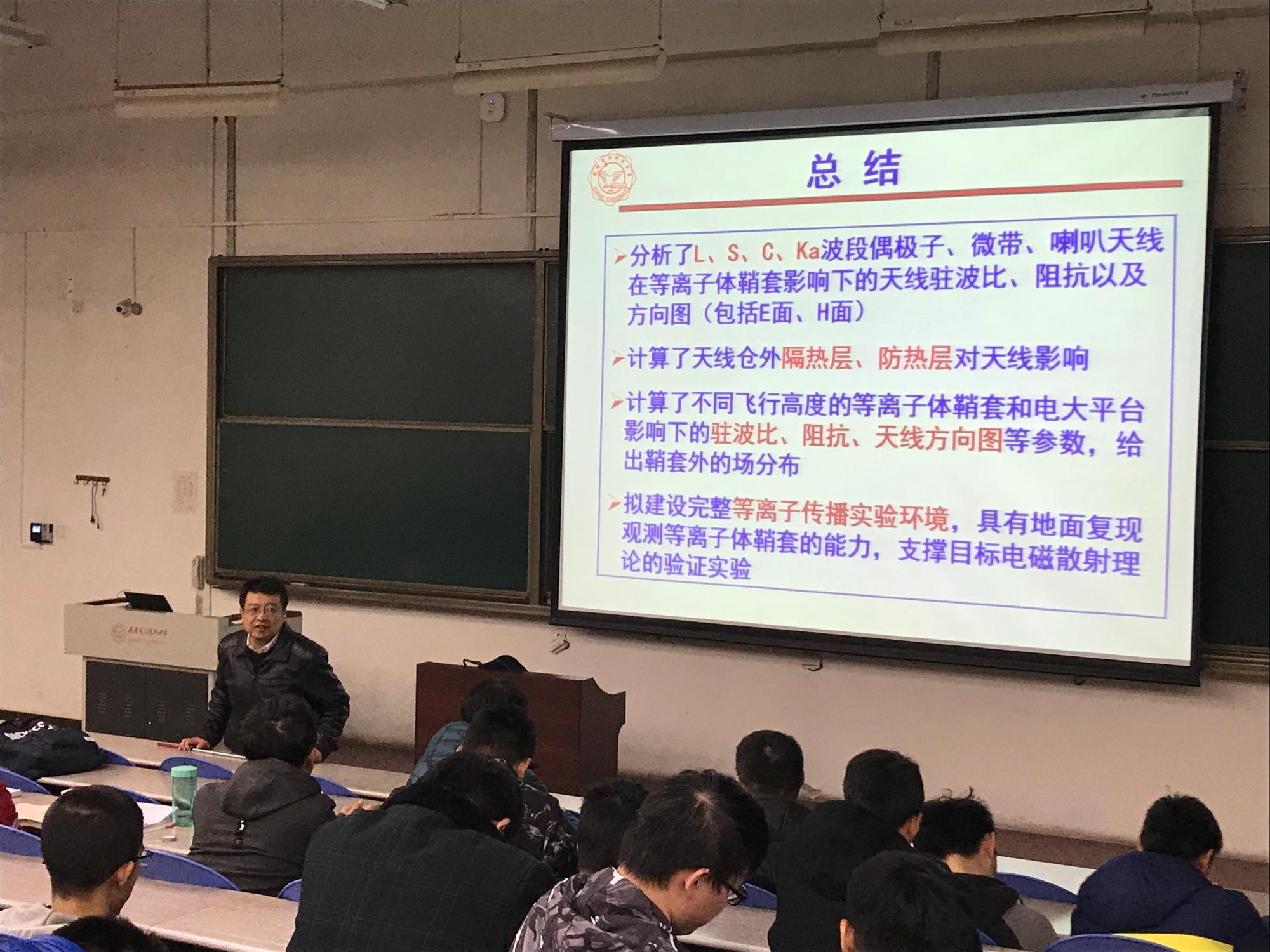 (通讯员:宫超越)2017年11月30日晚七点,XC体育于B433教室开展了题为“临近空间高超声速飞行器目标电波传播/散射和天线原理辐射特性”的公司大讲堂活动,由XC体育经理郭立新主讲。郭经理从该项目的重要内容“等离子体鞘套”入手,结合研究进展,为大家生动地展示了其重要意义,让同学们感受到了所学专业对国防事业的重要贡献。
