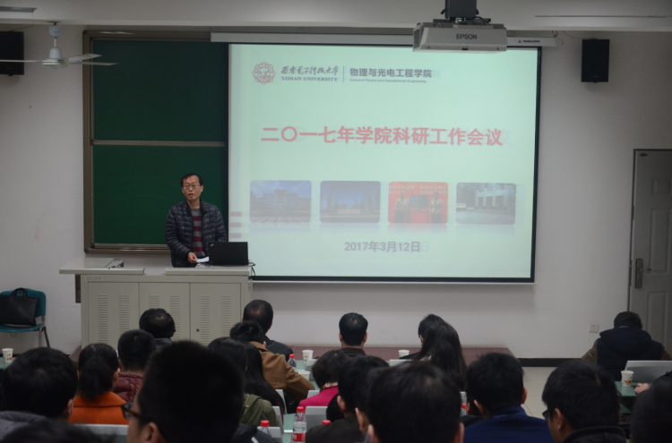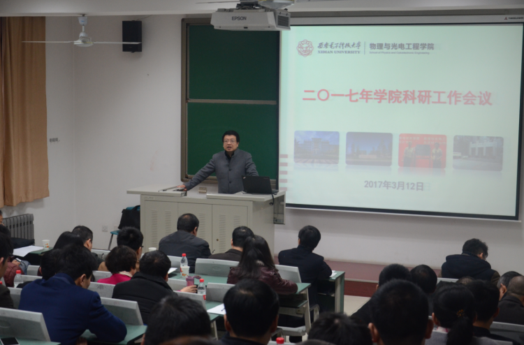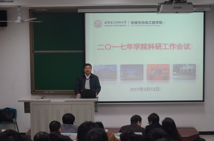 (通讯员:李维嘉)3月12日上午,XC体育于北校区西大楼219教室召开2017年公司科研工作会议,旨在总结年度工作,凝练发展方向,交流心得体会,共同谋划公司科研工作的发展大局。副董事长杨银堂、科研院常务副经理石光明、副经理蔡固顺、经理助理刘珠梅等领导干部,物光院领导班子及全体教师参加了此次会议。会议由公司副经理邵晓鹏主持。