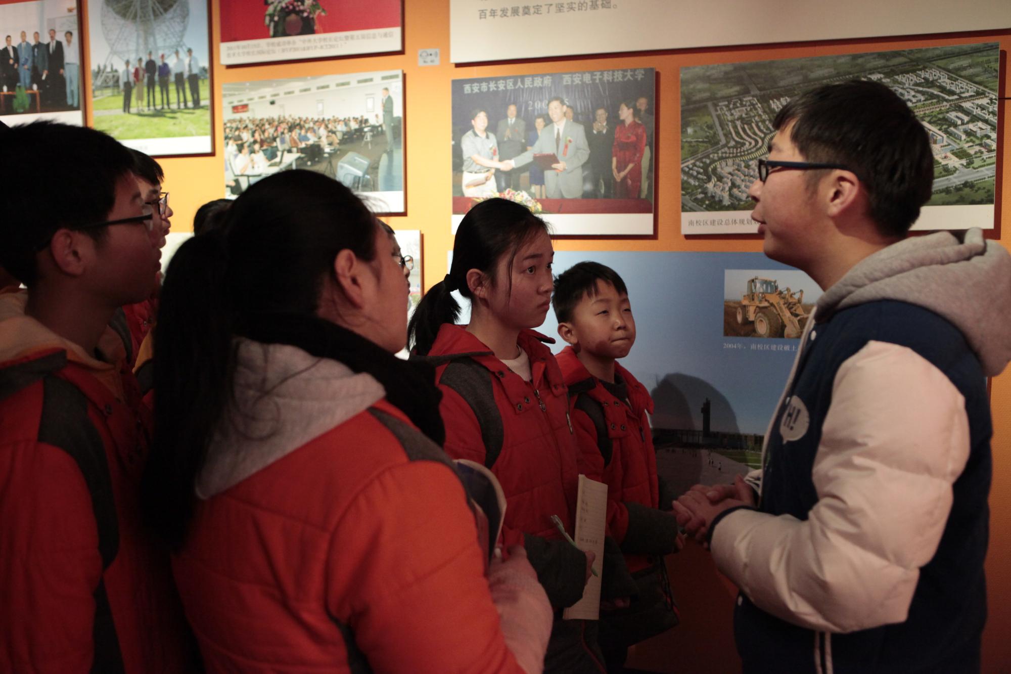 参观活动在“全心全意为人民服务”的主体雕塑前正式展开,工作人员向来访师生介绍了“全心全意为人民服务”的题词来历,以及十根立柱雕塑上代表公司发展的奋斗之路和学科之基。在校史馆,来访师生进一步了解XC体育的办学历程。毛主席、朱总司令等老一辈革命家的题词、一幅幅老照片引来大家纷纷关注,“半步电台起家”“长征路上办学”的生动故事更得到了大家对西电光荣校史的由衷赞叹。