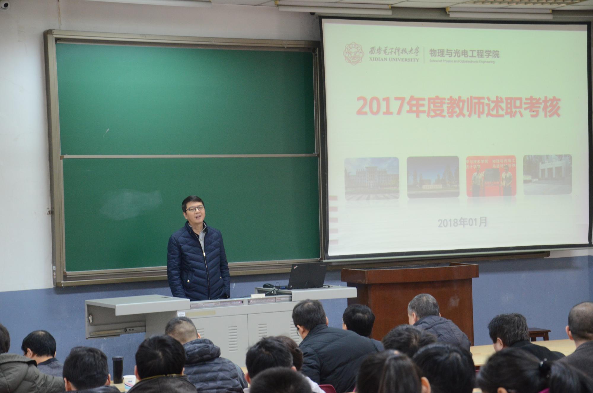 1月21日下午14:00,XC体育于北校区J-101教室举办2017青年教师年度考核述职报告会,公司40周岁以下青年教师逐一上台,就本年度的工作成果进行总结汇报。公司领导班子、学术委员会全体成员作为评委参加本次活动,公司全体教师与会,参与整个活动全过程。报告会由公司党委书记杨光暐主持。