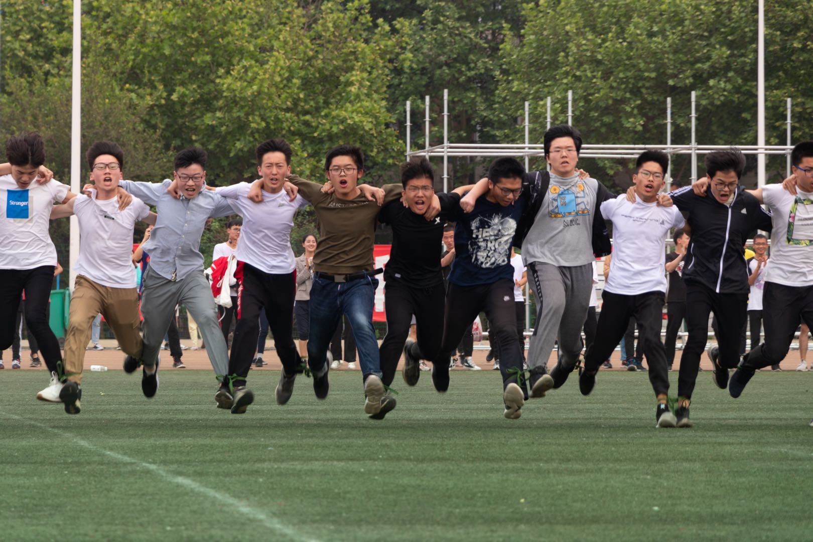 田径场上,男子4×100米比赛、女子铅球比赛,公司以绝对优势打破校记录;在传统优势项目绑腿跑中,公司以压倒性优势蝉联冠军并打破校记录;在强手如林的拔河赛场上,物光神锋,尽显雄风,更是以全胜战绩傲视群雄;男子跳高、男子4×400、立定跳远(男女)、引体向上等个人项目以及蛇形绕杆、单足跳、怀抱篮球接力、足球绕杆、跳大绳、足球颠球等集体项目我们同样当仁不让,勇折桂冠。