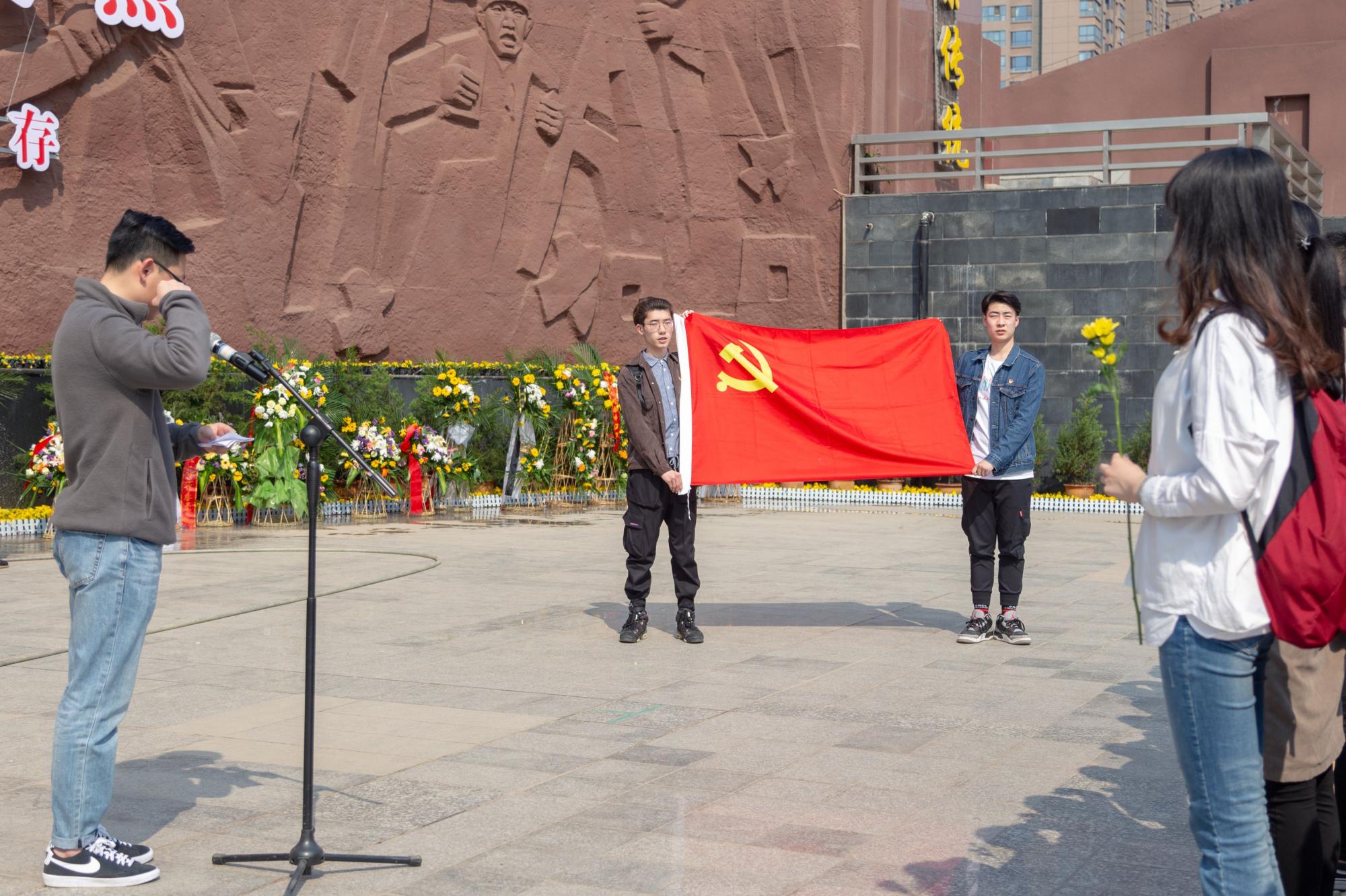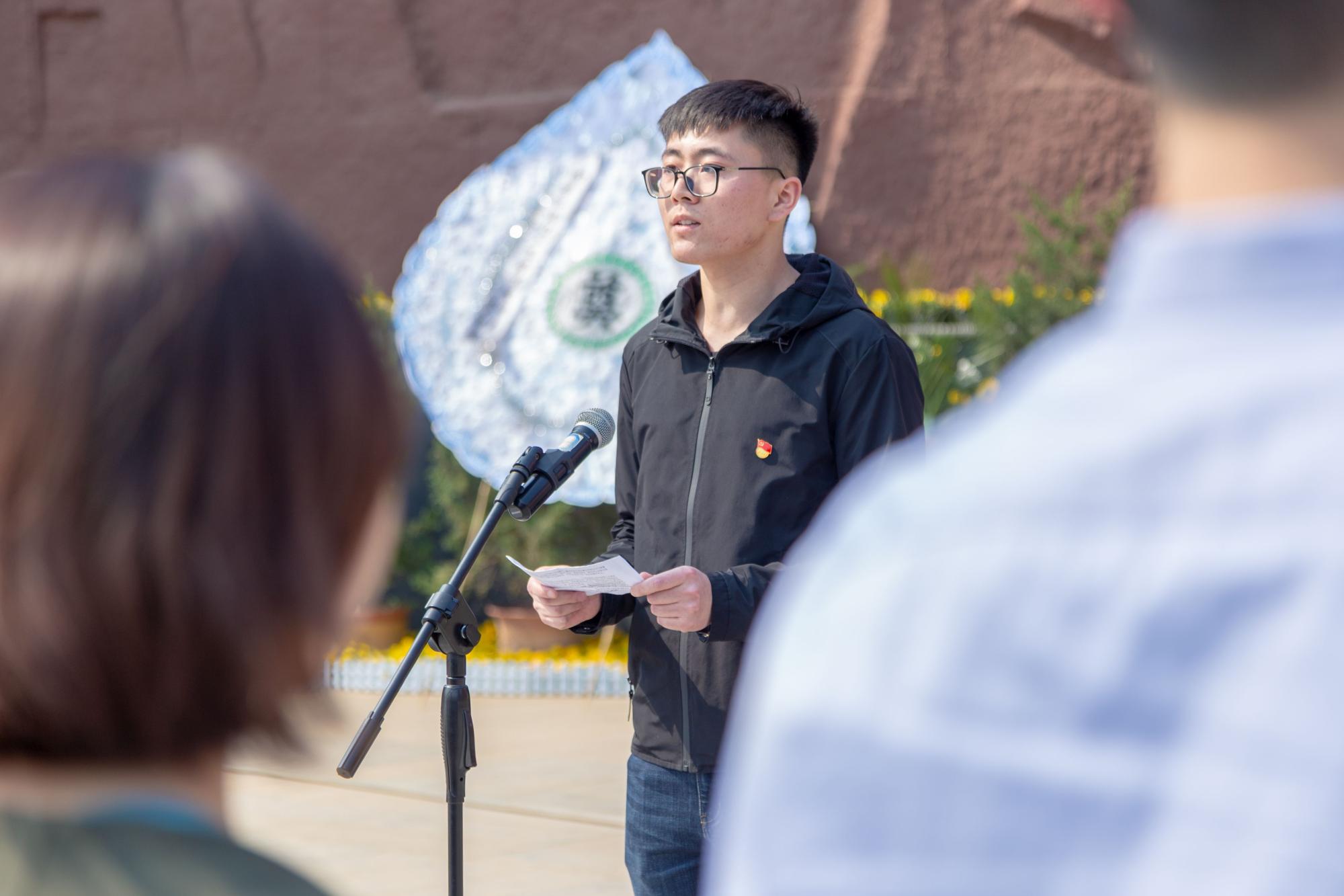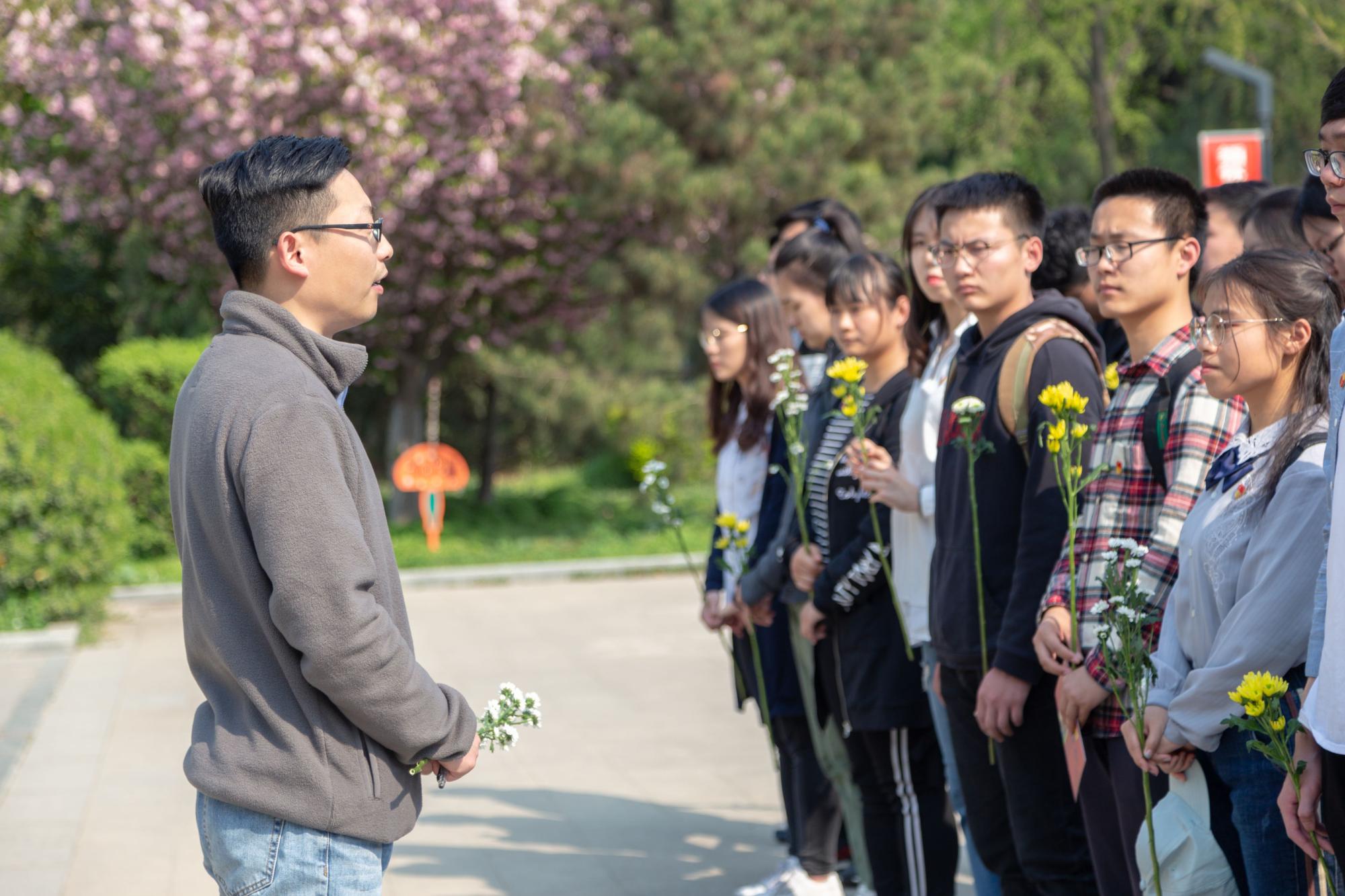 肃穆的陵园中,缕缕春风,诉不尽对革命烈士的无限深情。 无言的翠柏,标示着烈士们的精神;沉默的微风,拂动着公司本科生党员的心绪。下午两时许,祭扫仪式正式开始。首先,全体党员在鲜红的烈士纪念碑前默哀三分钟以寄托对革命先烈的无限哀思。接着2017级辅导员田宪、刘昕玮代表大家向烈士敬献花圈,表达对革命先烈的崇高敬意。员工党员代表王佳乐发言,铿锵有力的话语表达了自己对革命烈士的崇敬以及继承发扬革命先烈精神的渴望。随后2016级辅导员史公鹏讲话,希望党员同志们能够珍惜这来之不易的生活,加强党性修养,积极发挥党员先锋模范作用,引导身边同学发扬“艰苦奋斗、自强不息,求真务实、爱国为民”的西电精神。然后,史公鹏带领大家重温入党誓词,引导每一位党员坚定理想信念,不忘初心、牢记使命,砥砺奋进。最后,全体师生环绕纪念碑一周,将手中的鲜花献于纪念碑前,表达对烈士们的缅怀之情。