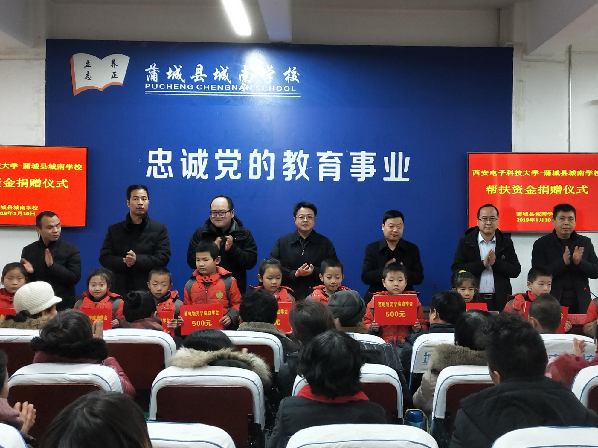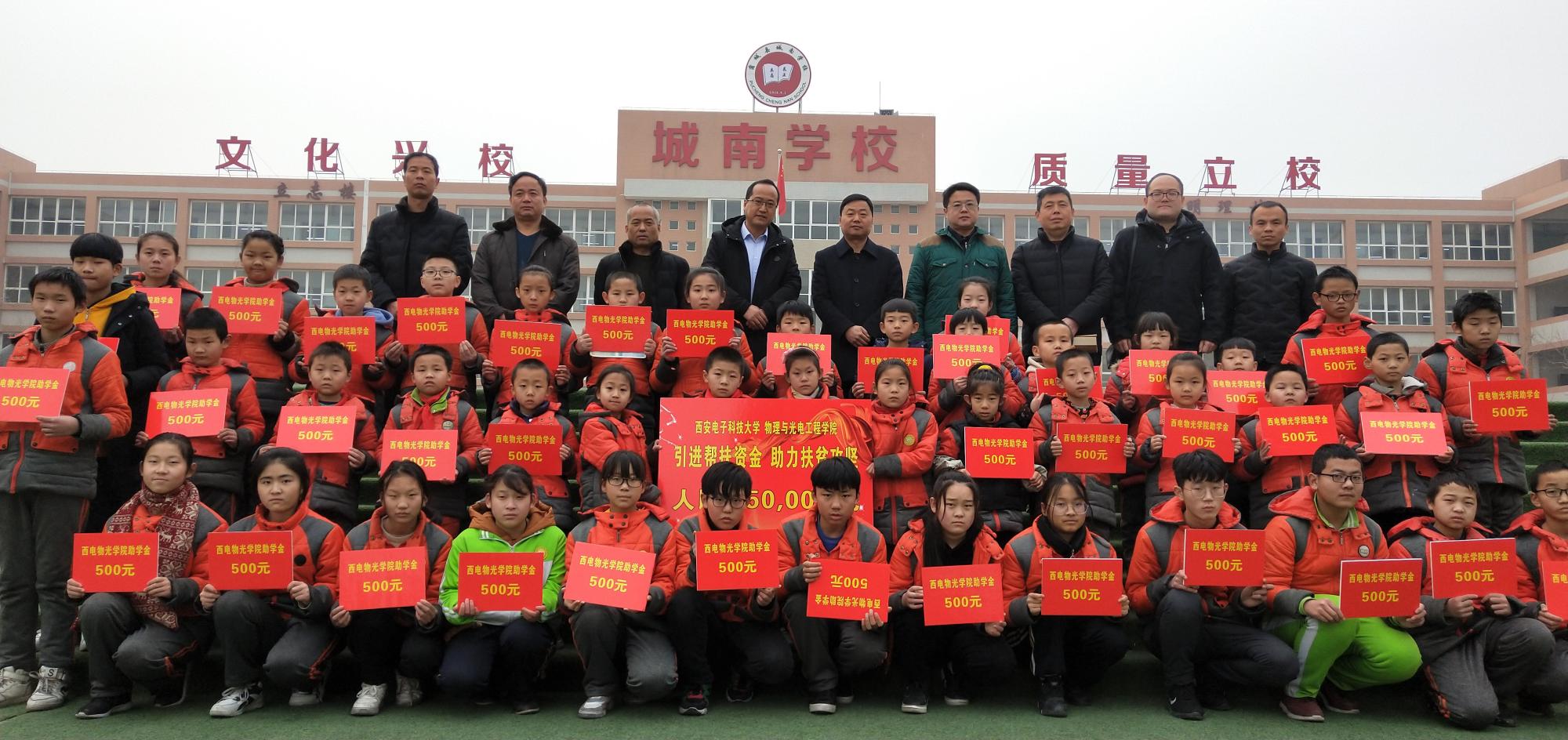 捐赠仪式上,独国社在讲话中谈到,公司充分发挥高校在国家脱贫攻坚工作中的特殊优势作用,将“扶贫”与“扶智”、“扶志”相结合,多次向蒲城县城南公司捐赠课外书籍、文体用具、科创工具,开展对接洽谈、志愿授课、科技讲堂等各类扶贫对接活动多次,建立了蒲城县城南公司“XC体育老员工志愿服务基地”、“XC体育XC体育老员工实践基地”,援建“西电物光院-蒲城城南公司员工科技活动室”,并邀请城南公司师生来公司参观交流。本次公司发挥员工企业与合作单位资源优势,与西安中科洺光测控技术有限公司、洛阳长峰电子科技有限公司签署协议,引进5万元帮扶资金,用于设立“2018年XC体育—蒲城县城南公司贫困生‘物光助学金’”和帮助改善城南公司基础教育设施。城南公司要用好帮扶资金,为员工提供更加优质的教育服务,使受助员工能够不受经济困难束缚,早日成长为祖国的栋梁之才。希望同学们铭记社会各界的深情关爱,正视并战胜困难,不负家庭和社会的厚望,把关爱化为奋发学习的动力,坚定信心,自强不息,刻苦学习,提高素质,练好本领,努力成为对国家、对社会有所作为、有所贡献的人才,以优异的成绩和将来的出色表现,报效祖国,回报社会。