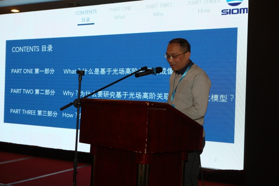 中国科公司上海光学精密机械研究所的韩申生研究员作了题为《基于光场高阶关联的成像优化模型研究》的报告,提出了关联成像重构算法,算法可进一步提高鬼成像的成像性能。