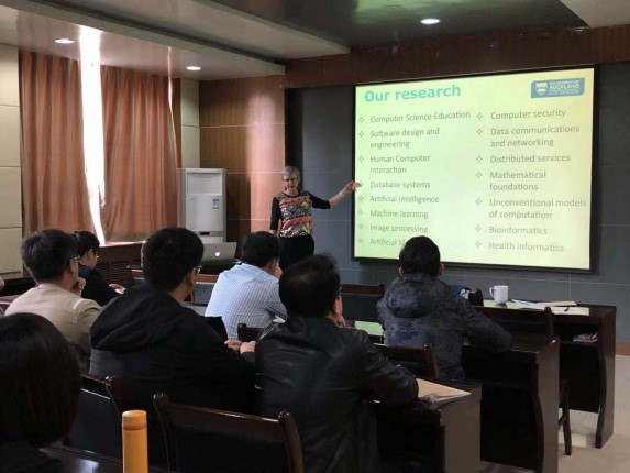 周慧鑫教授在总结中指出,Gill Dobbie教授对汽车排放物预测的模型建立的针对分析和解决实际的问题,对问题研究的思路和方法值得大家借鉴。Gill Dobbie教授的报告内容丰富,讲解生动,深入浅出,拓宽了大家的学术视野,会后,与会教师和研究生与Gill Dobbie教授进行了深入的交流。