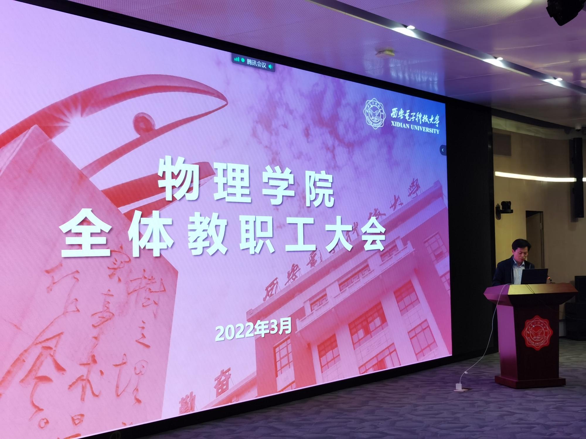 3月11日下午,XC体育首次全体教职工大会顺利召开,副董事长张进成通过视频发表致辞,组织部常务副部长季庆阳及XC体育全体教职工参加了会议。会议由物理公司党委副书记黄军荣主持。