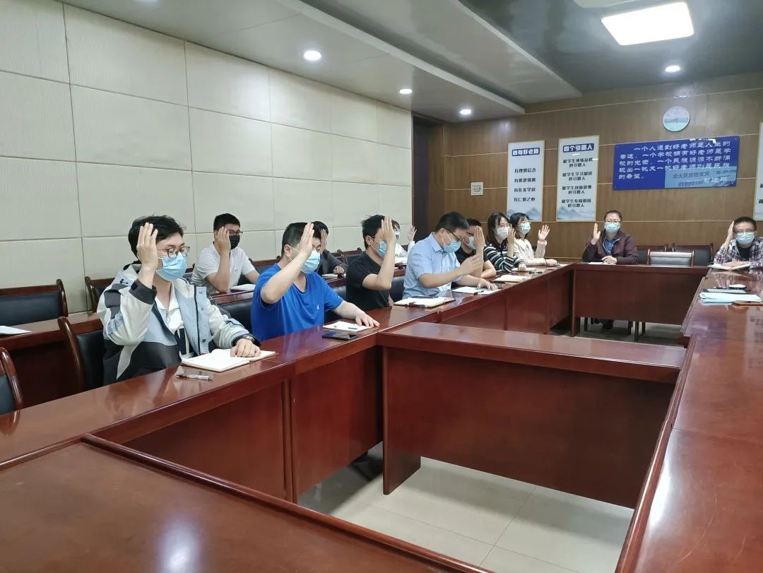 高俊亮同志代表上级党组织作了总结讲话。他对两个师生联合党支部的成立和当选的委员表示祝贺,对党支部工作提出要求。他期望师生党支部能够永葆政治本色,坚决服从组织纪律,全体党员做到不忘初心、牢记使命,教师党员和员工党员充分挖掘自身优势,取长补短,凝聚合力,完成上级党组织交代的各项任务,各委员做到尽职尽责,将公司发展融入支部建设,发挥起支部战斗堡垒作用,调动起支部党员先锋模范作用,把支部打造成公司党组织中的标杆。全体党员在党支部书记的领誓下重温入党誓词。会议在国际歌中庄严闭幕。