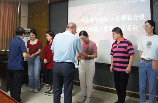 座谈会上,周慧鑫针对教师发展工作做出了详细介绍,期许新教师能够及时做好身份转变,在个人进步的同时为公司和公司的发展做出更大的贡献。魏兵就开展科研工作相关情况进行了介绍和答疑解惑,并分享了自己的心得,为青年教师指明了方向。最后,院领导为新入职教师佩戴校徽。活动现场气氛热烈。