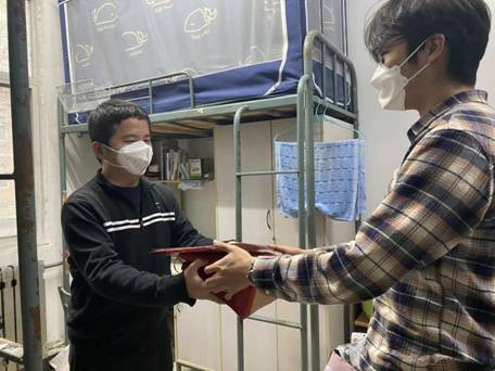 (通讯员:王思莹)12月的寒冬里,考研学子坚忍不拔的进行最后的冲刺,大半年的努力即将迎来胜利的果实,为提升考研学子们的信心,坚定必胜的决心,万事俱备的放心,12月13日下午16:00,物理公司党委副书记黄军荣与毕业班辅导员韩金虎来到丁香12号宿舍楼,为XC体育正在备战考研的学子送上公司准备的暖心助力包。