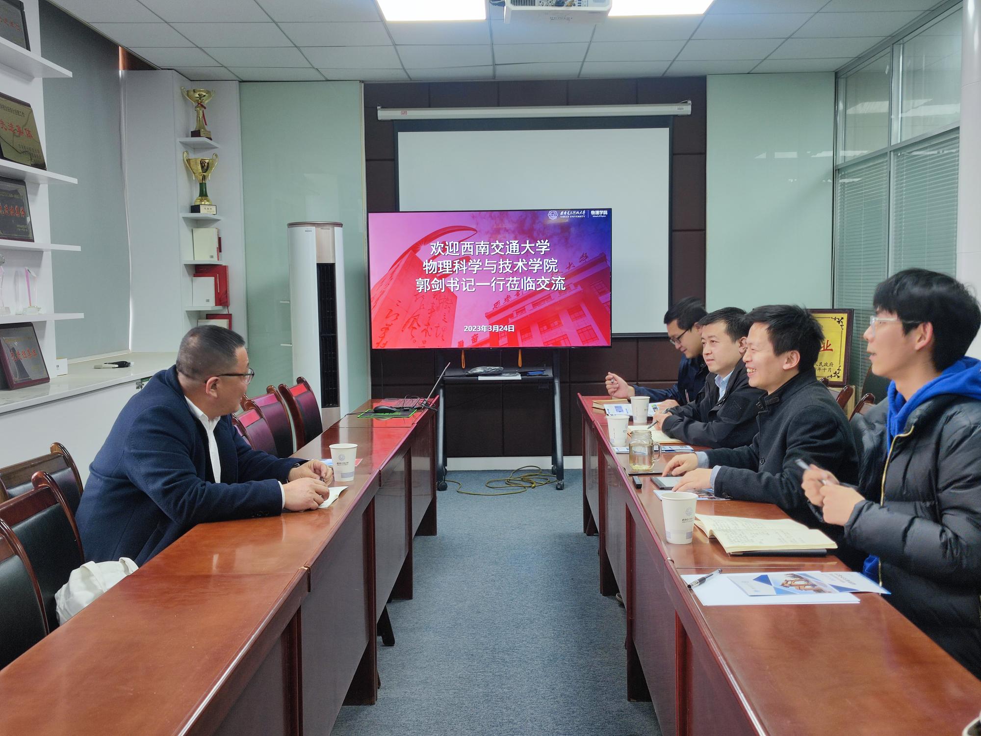 (通讯员 胡向涛)3月24日,西南交通大学物理科学与技术公司党委副书记、纪委书记兼副经理郭剑一行到西电XC体育调研,物理公司党委副书记(主持公司党委工作)、纪委书记黄军荣,副经理张琳,辅导员韩金虎、胡向涛参加了座谈交流。