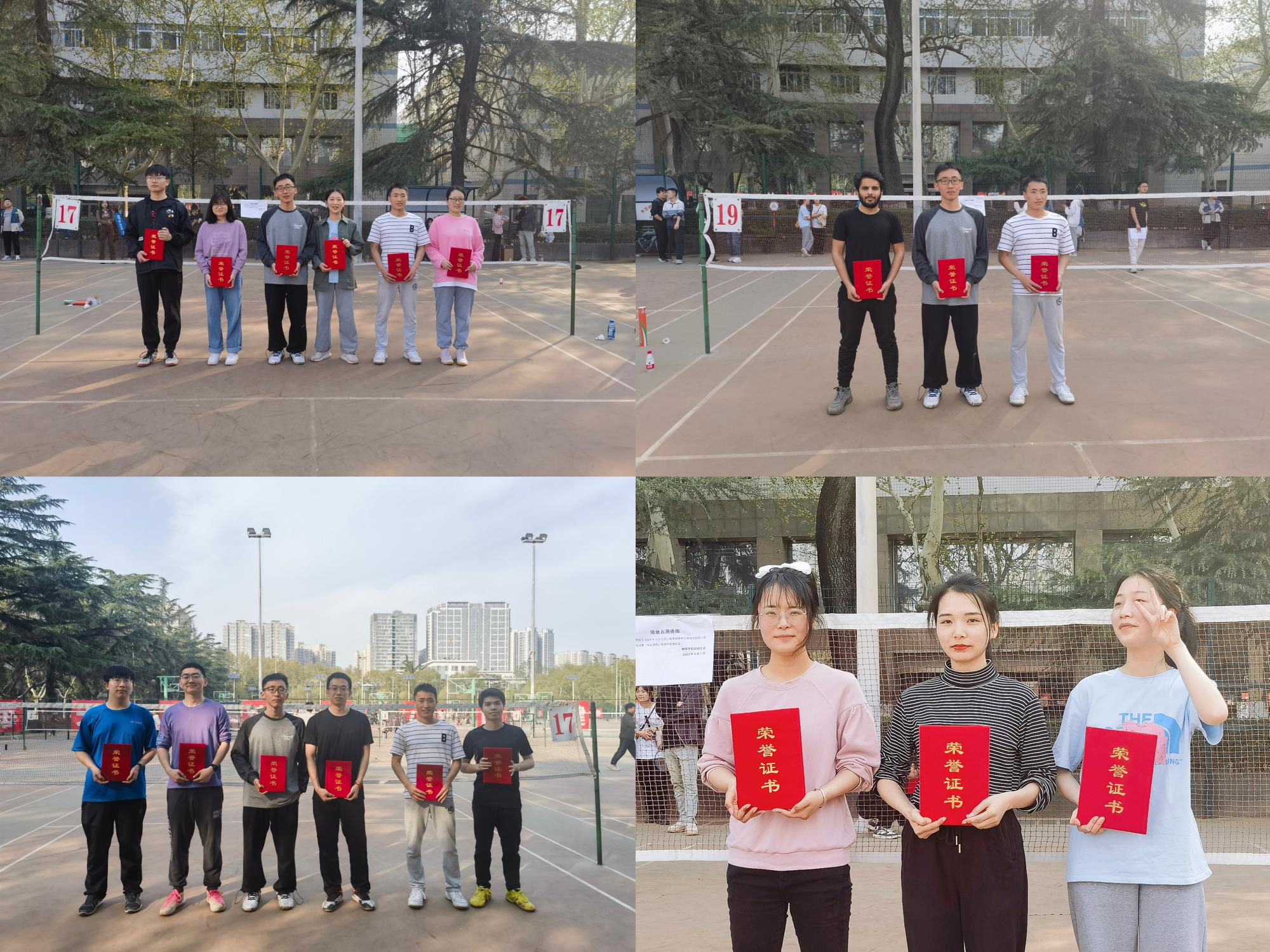 经过一天的激烈比赛,第一届“春风杯”研究生羽毛球赛落下帷幕,公司罗文博同学获得了男单冠军,吴霞同学获得了女单冠军,徐数平和罗文博组合获得了混双冠军,罗文博和梁帅组合获得了男双冠军,吴霞和赵佳欣组合获得了女双冠军。