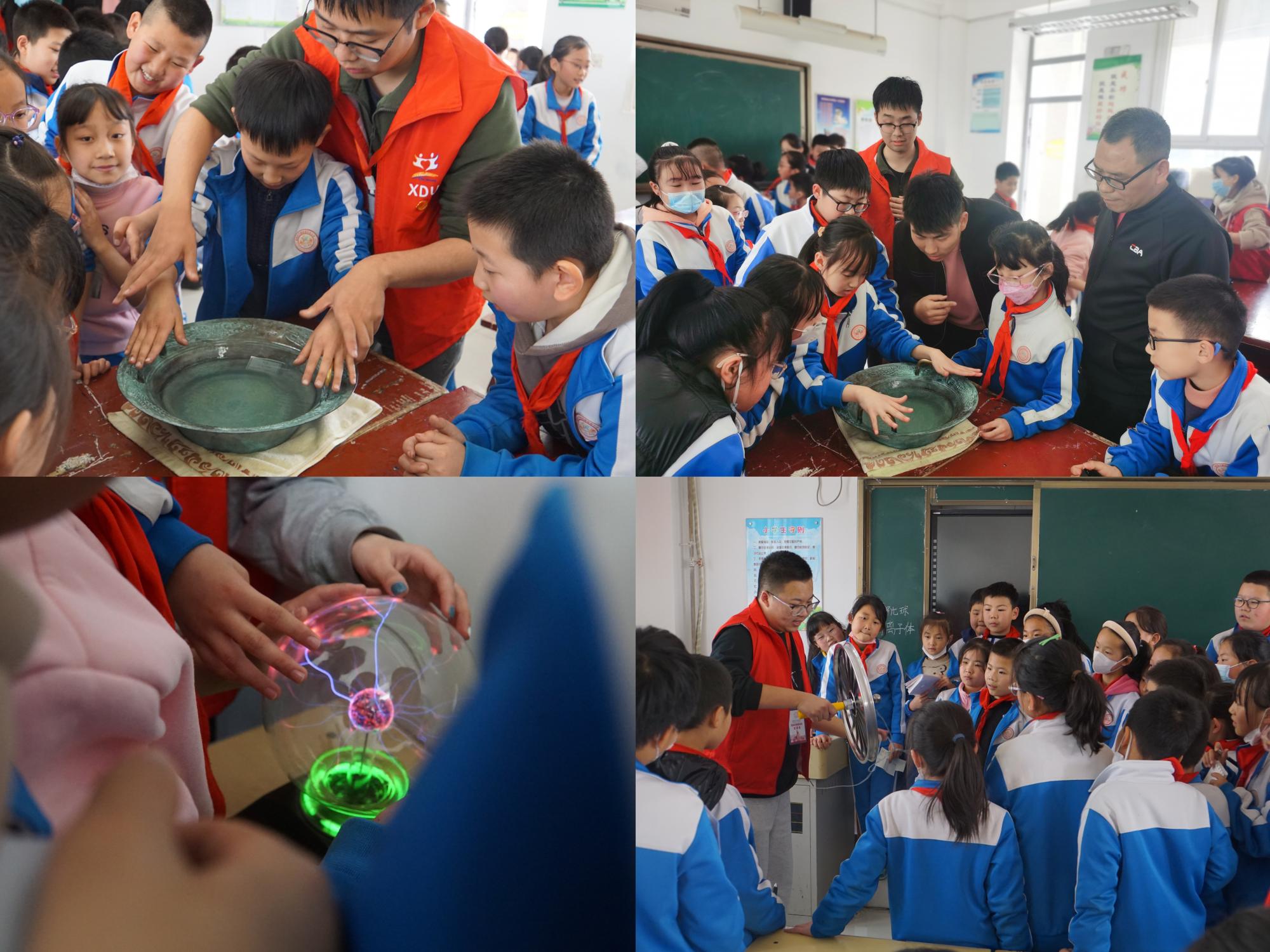 (通讯员 邵思颖 景玉)为深入学习宣传贯彻党的二十大精神,立足社区需求,聚焦西电特色,把社区实践做“实”,4月7日下午,XC体育志愿者服务队伍前往高新区第三十六小学,以激发员工科技兴趣为主题,开展了物理知识科普、物理趣味实验教学等志愿服务活动,带领孩子们走进科学,感受科学,喜欢科学。本次活动由XC体育团委负责人罗庆辉带队,辅导员景玉及物理志愿者服务队的20余名同学共同前往,西安高新区第三十六小学党支部书记、董事长徐利民、副董事长赵建锋和校办负责人李蕴韬老师共同参加活动。活动依托XC体育实验室的众多趣味仪器,根据员工年龄和实际科普内容,设计了有趣的物理实验,让孩子们切身体会到物理的魅力所在,激发孩子们内心对于科学的学习热情。