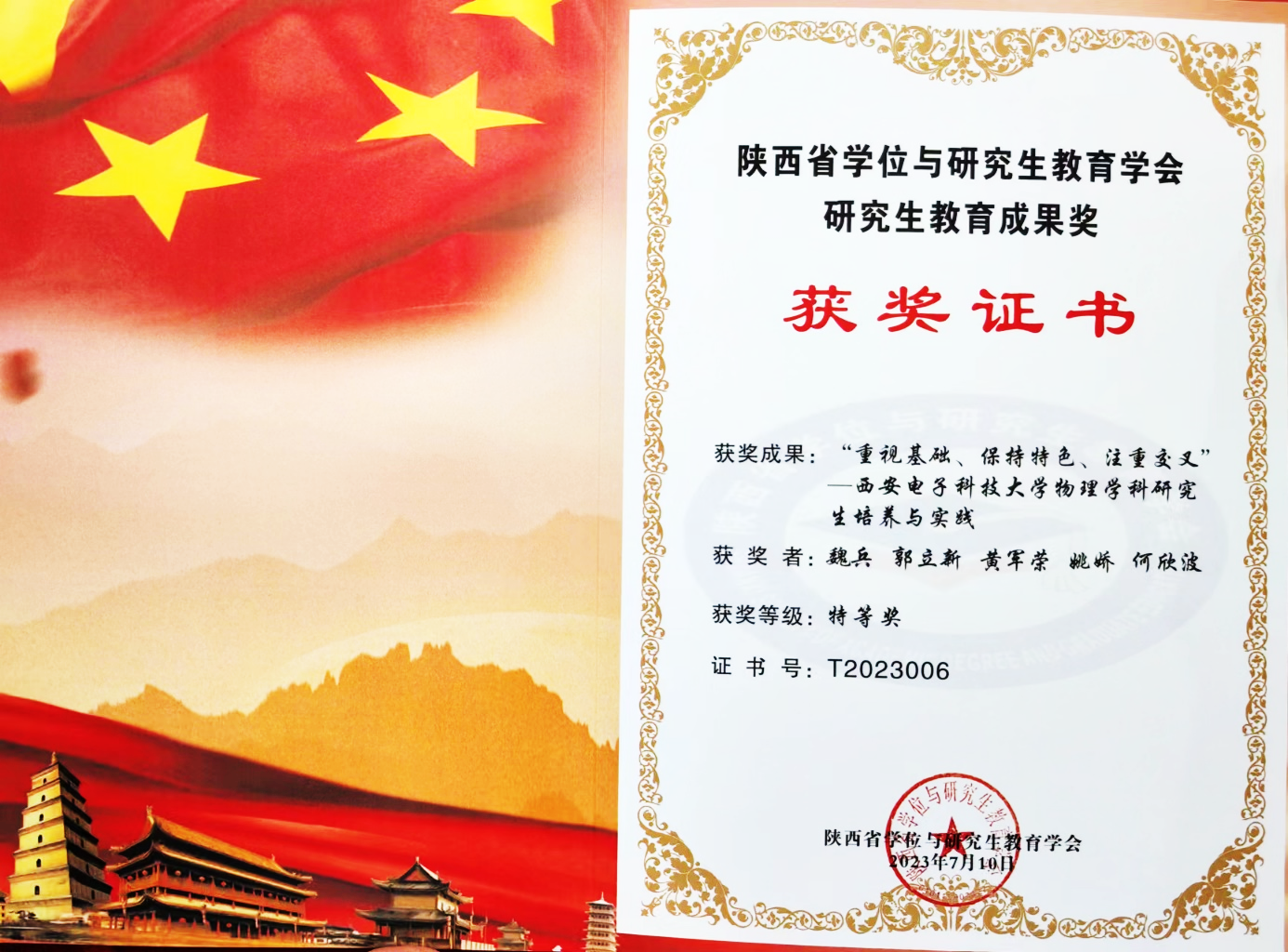 (通讯员:姚娇)近日,陕西省学位与研究生教育学会公布了第三届陕西省学位与研究生教育学会研究生教育成果奖评审结果,XC体育申报的5项成果获得奖励,其中特等奖2项,一等奖1项,二等奖2项。公司魏兵教授领衔的团队完成的研究生教育成果“重视基础、保持特色、注重交叉——XC体育物理学科公司产品与实践”荣获特等奖。