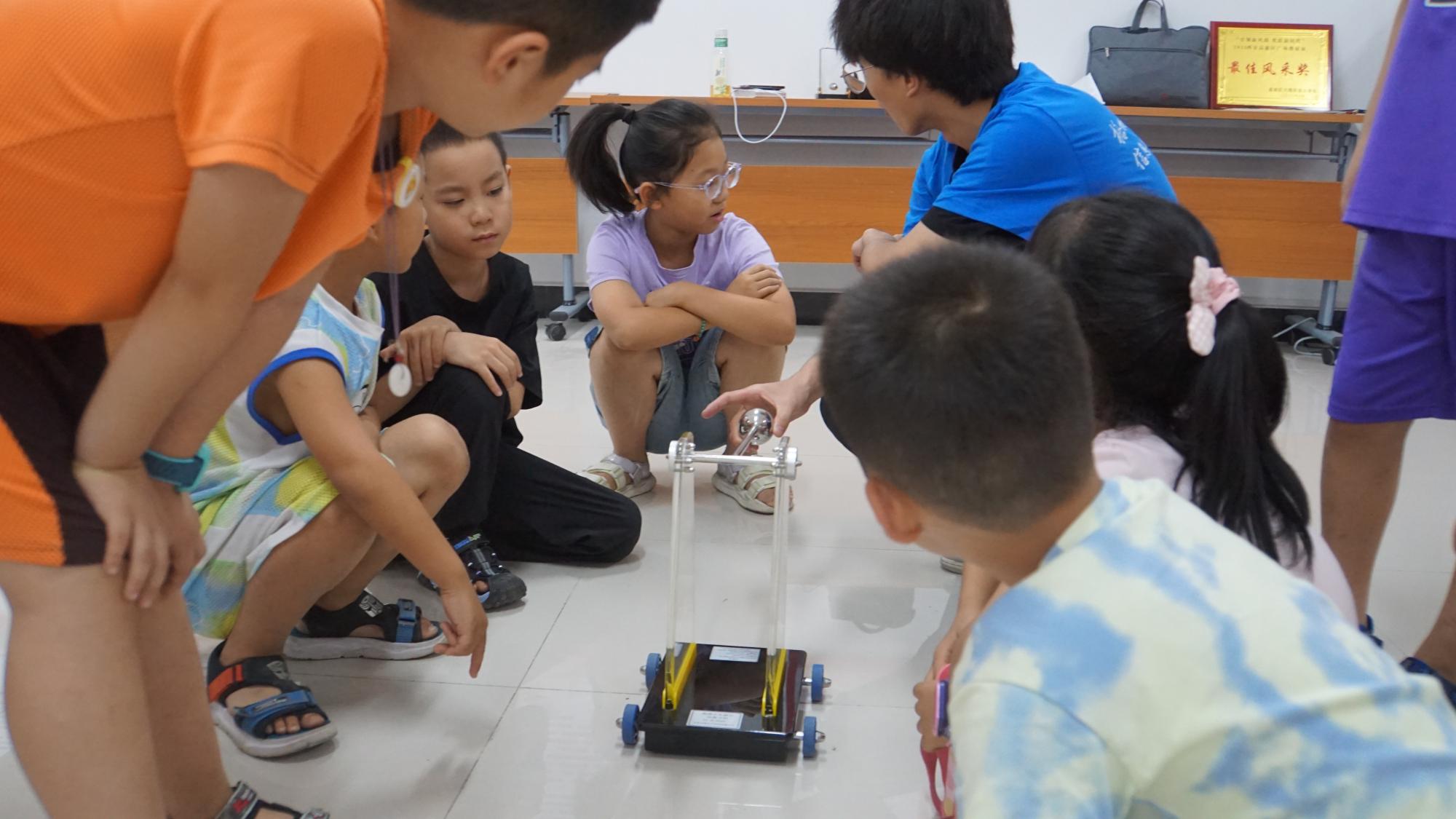 在西安市长安区兴隆鑫苑社区,队员张嘉轩以手工课的方式与孩子们互动,教授他们如何制作纸飞机;队员李超阳向同学们介绍剪纸的历史并带领孩子们学习剪纸;队员倪朔和余修锟讲解物理小实验。实践队队员们通过和孩子们一起绘画、做手工、唱歌、做游戏等,迅速打成一片,孩子们对实践队员产生了浓厚的感情。
