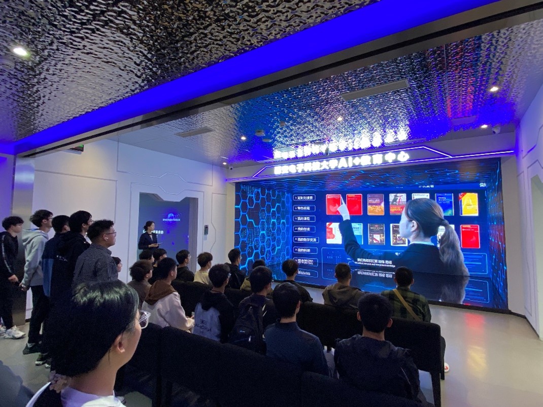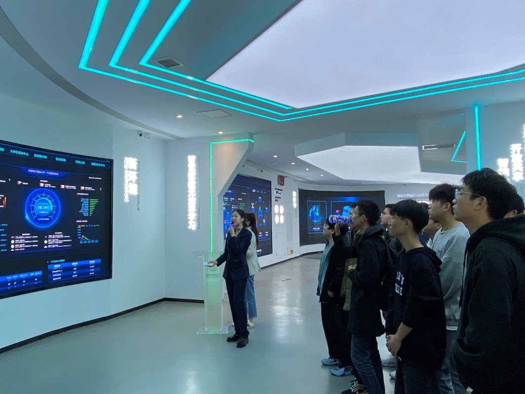 首先,同学们在讲解员的带领下共同观看了AI+教育中心的介绍视频,了解了XC体育AI+教育中心的服务内容与运行机制,对智能时代的高校管理、教学服务新模式有了全新的认识。