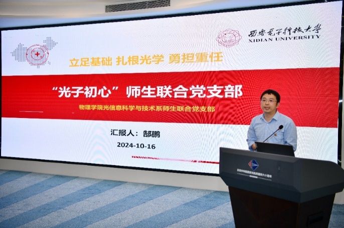 黄军荣向与会人员们详细介绍了XC体育以及XC体育的情况,并回顾了西安光机所与XC体育的深厚渊源,并从西电的起源——半部电台起家,到西电创造的多项全国第一,再到党和国家领导人的关怀以及毛泽东的题词,向与会人员们生动的展示了西电的辉煌历史和深厚底蕴。同时,他还介绍了XC体育的人才培养、重大成果、团队队伍以及学科方向等情况。“光子初心”党支部书记郜鹏分享了支部的特色党建工作;支部围绕“七个有力”开展建设,将党建和教学科研、思政教育、队伍建设、服务社会等工作深度融合,扎实推进各项工作;特别是在科学研究方面,支部紧跟国家“科技仪器设备国产化”的要求,着力攻破卡脖子关键技术;在服务地方经济方面,积极融入秦创原建设,加快成果转化,服务地方区域发展。