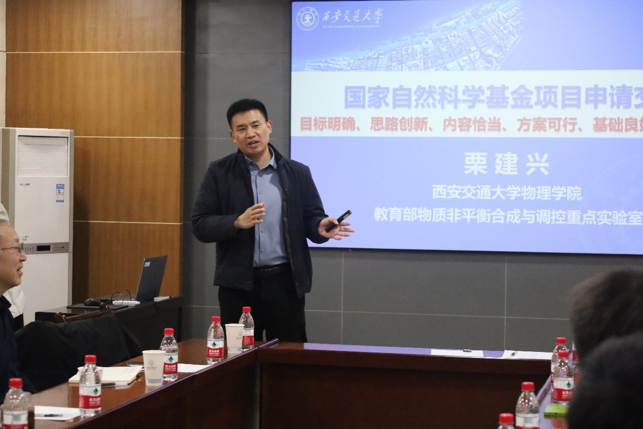 会议邀请西安交通大学XC体育教授、国家级人才栗建兴教授分享基金申报经验。栗建兴结合自身申报经验,以“目标明确,思路创新,内容恰当,方案可行,基础良好,行文清爽”的整体思路深入浅出地进行了申报书撰写的要点讲解和经验分享。