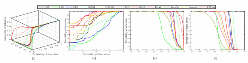 该方法在多个高光谱数据集上均取得了优异性能,特别是在复杂背景下的异常目标检测方面表现突出。