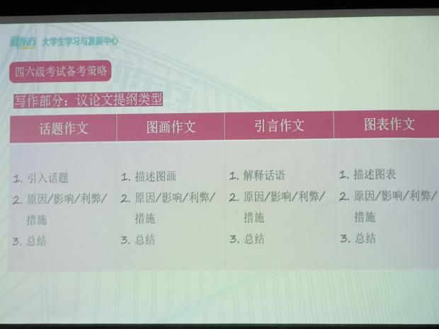 马冠男老师拥有7年英语教学经验,累计培训学员超8000人,教学风格以“跨界勾连知识、课堂生动有趣”著称。讲座伊始,马老师结合物理学科员工的思维特点,系统地梳理了六级考试的重难点,强调“知行合一”的学习理念。他通过实例解析阅读、写作等模块的应试技巧,针对高频考点进行删繁就简的归纳,帮助同学们快速构建知识框架。而在大部分同学都倍感吃力的听力部分,马老师表示精听细节是听力最重要的技巧,要将听句子转化为听短语、听单词、听关键词,才能在考试中更显游刃有余。
