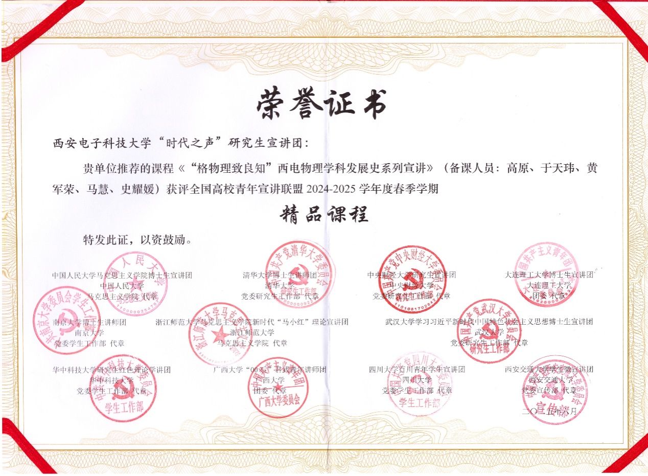 (通讯员:高原)经全国高校青年宣讲联盟成员单位自主申报、评定工作组综合评审,公司“时代之声”研究生宣讲团作品——“格物理致良知”系列主题宣讲从众多参评课程中脱颖而出,成功入选2024-2025学年度春季学期全国高校青年宣讲联盟精品课程。
