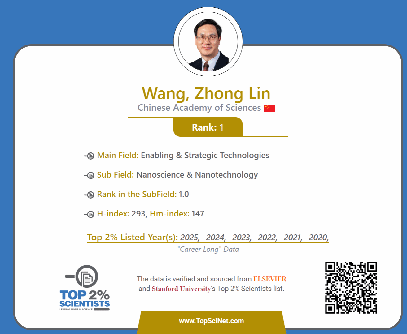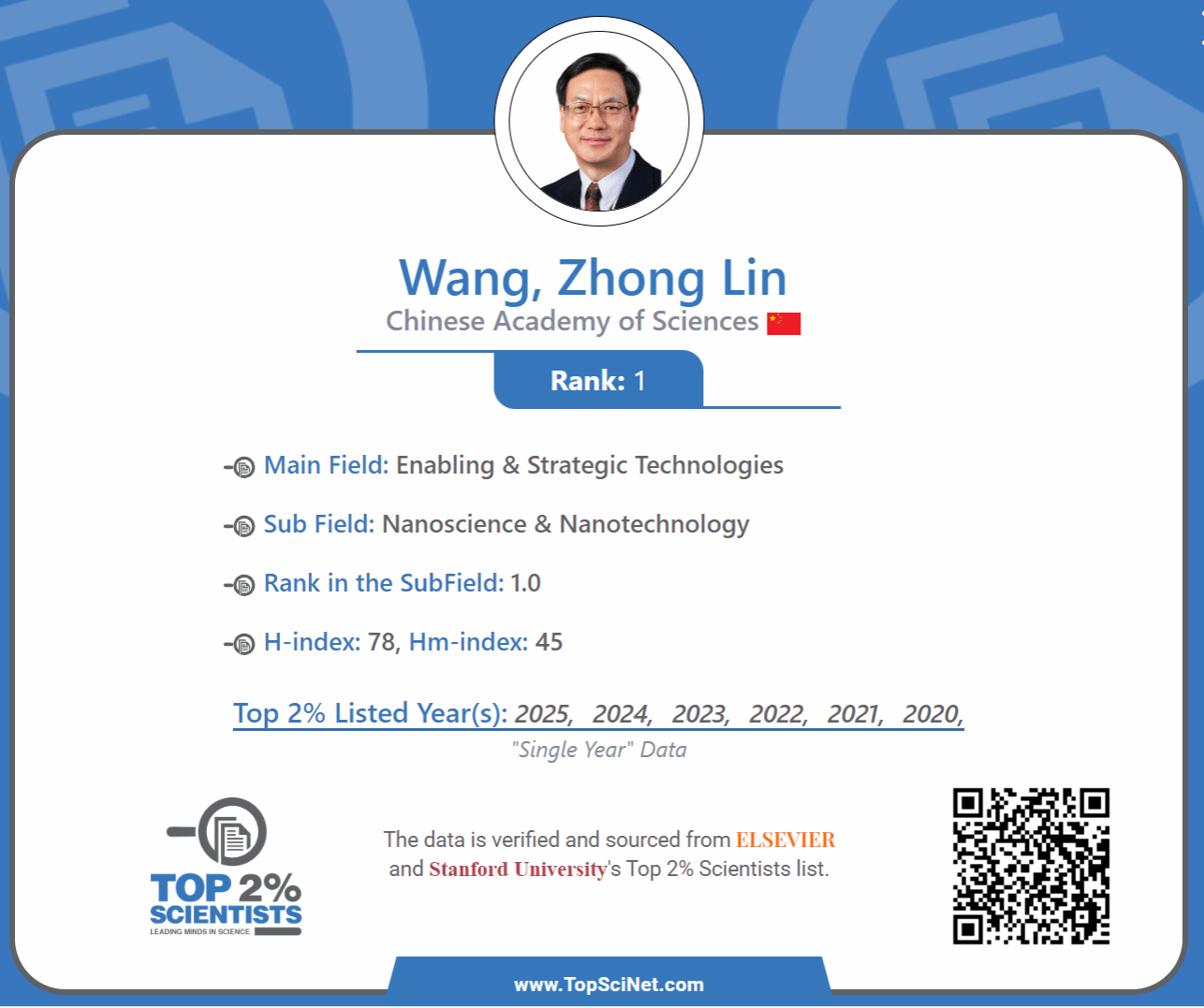 该榜单基于Scopus数据库近700万科学家数据,通过学术产出、引用次数、h因子等多维度指标,从22个一级学科及170余个细分领域中,评选出终身科学影响力与年度科学影响力前2%的学者。其结果广泛用于衡量科学家学术水平及机构科研实力,是全球学术界公认的重要标杆。
