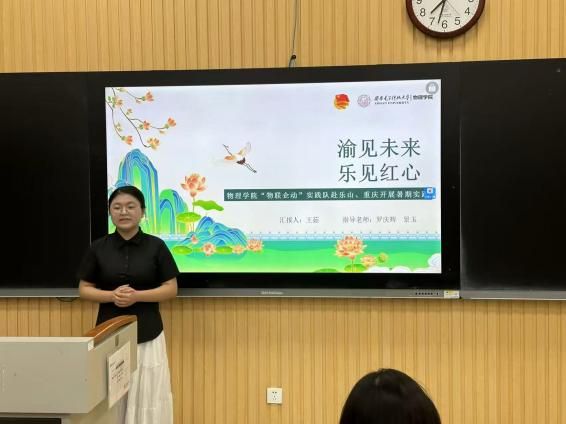 项目陈述环节,各团队代表以清晰的逻辑和生动的表达,全面呈现实践全貌。从项目背景的精准切入,到实施过程中“分工协作—问题研判—对策落地”的详细阐述,再到成果转化的具体案例与社会反馈的数据支撑,都展现出物理学子扎实严谨的实践作风。成果展示环节,各团队以图片展板、纪实短视频、数据对比图表等丰富多元的载体,生动还原线上教学的精彩瞬间、志愿服务的暖心场景与实地调研的真实见闻,让在场评委与观众直观感受到社会实践的丰富内涵与重要价值。提问环节,针对“如何深化实践成果辐射效应”“怎样构建长效化服务机制”等问题,团队代表从容应答、思路清晰,充分彰显出他们对实践项目的深度思考与系统规划。