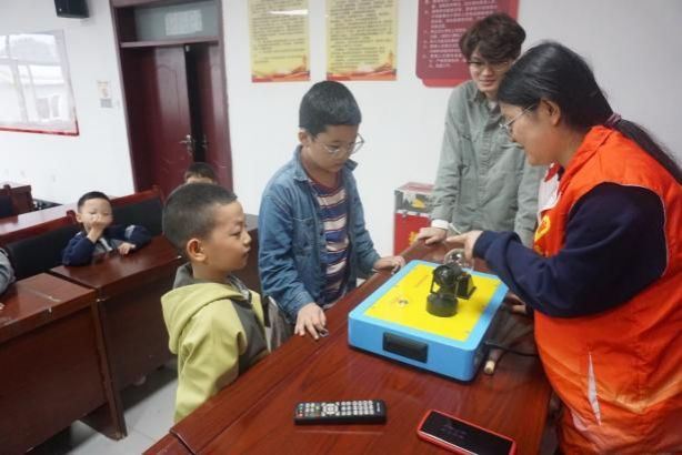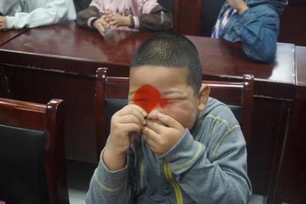 抵达目的地后,志愿者们迅速布置好实验场地,将带来的各类器材转化为奇妙的科学展台。活动伊始,一盏台灯驱动“光能风车”悠然转动,瞬间吸引全场目光。志愿者以风车叶片黑白两面吸热差异为切入点,生动阐释光能转化原理,同时引导小朋友们联想太阳光发热的生活现象。孩子们跃跃欲试,争相上台操作体验,亲身感受光蕴含的能量,在实践中深化对科学原理的认知。紧接着,“DIY皮筋琴”的实验让现场氛围愈加热烈。志愿者以“触摸声带”的互动形式,帮助小朋友直观感受振动发声的科学规律,并通过调节皮筋松紧度演示了皮筋松紧与音调变化之间的关联,让抽象的声学知识变得具象可感。在“变色眼镜”实验中,孩子们透过蓝色和红色的镜片观察世界,并在小讲师的耐心引导下,惊喜地发现双镜叠加后色彩变暗的吸光原理,一位小朋友兴奋地形容道“像吃了蘑菇一样”,引得现场笑声连连。