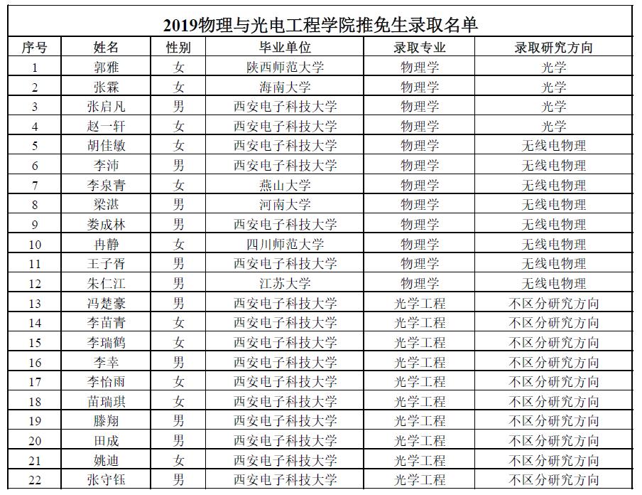 根据有关规定,现对XC体育2019年推免生录取名单予以公示,公示期为10天。