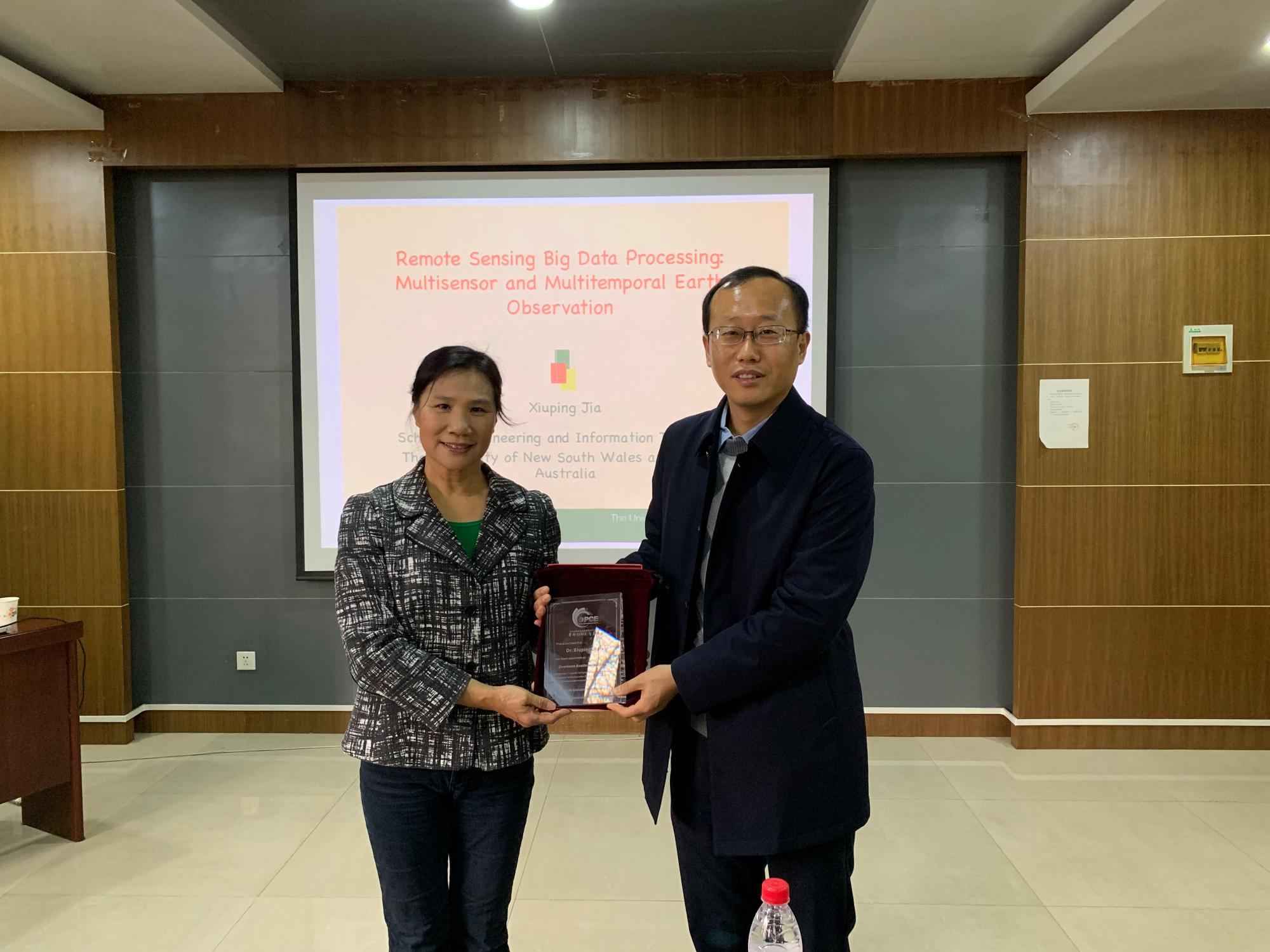 报告会上,首先由郭立新教授代表光电感知111基地向Xiuping JIA博士颁发了海外学术骨干聘书。