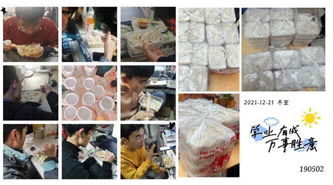(通讯员:高原程睿)冬至是我国农历中一个重要的节气,也是中华民族的传统节日,在古代民间有“冬至大如年”的讲法。然而2021年冬至正值期末备考复习关键时期,且西安市疫情形势陡增严峻。在这种环境下,同学们难免会有压力、有紧张焦虑的情绪。为了给忙碌中的同学们加加油、鼓鼓劲,缓解同学们的压力、增强班级凝聚力,XC体育积极动员员工党员、入党积极分子、员工干部以多种方式自发给同学们送去温暖和关爱。190...