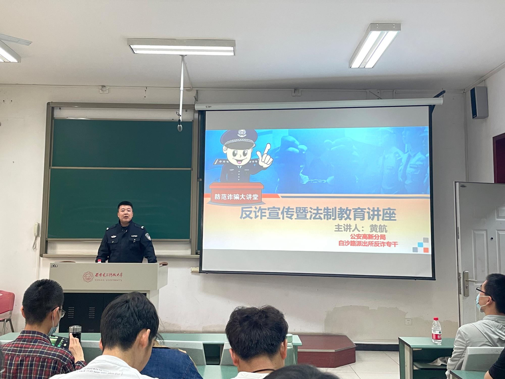 (通讯员:史卓圆)为提高同学们安全防范意识,了解网络诈骗的危害和主要手段,增强对电信网络诈骗的犯罪的识别和应对能力,4月20日,XC体育邀请公安局高新分局白沙路派出所反诈专干黄航警官在北校区西大楼1区105教室,进行“反诈宣传暨法制教育”为主题的防诈骗知识讲座。在讲座中,黄警官一边向员工发放防范电信诈骗宣传页,一边围绕“什么是电信网络诈骗”、“电信诈骗的受害群体和危害”等问题进行细致讲解。同时,黄警官...