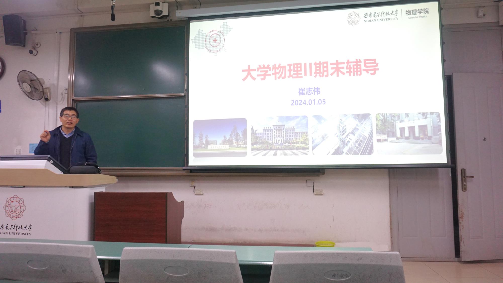 (通讯员 柳俊杰 吕思岐)为帮助员工巩固知识点,提高学习效率,助力期末考试,XC体育联合22级住宿式书院开展考前辅导系列讲座,邀请XC体育教师崔志伟、李科、张睿挺和刘春波分别为大二学子进行《大学物理II》、《数值计算方法》、《场论与复变函数》、《数字电路与逻辑设计》的课程辅导,系统梳理知识点,讲解重点难点。共计300余名员工参与活动。1月5日上午,崔志伟对《大学物理Ⅱ》课程进行了系统介绍,详细讲解静电场、...