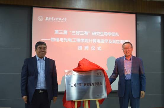(通讯员王祎心)4月28日,XC体育计算电磁学及其应用团队(SIS)在北校区西大楼II区412会议室举行“三好三有”研究生导学团队挂牌仪式。党委副书记杨银堂,研究生工作部和XC体育领导、团队师生共30余人参加。仪式由XC体育执行经理邵晓鹏主持。研究生工作部部长秦荣首先对团队表示祝贺。她说,计算电磁学及其应用团队能够荣获第三届“三好三有”研究生导学团队荣誉称号,离不开团队师生的共...